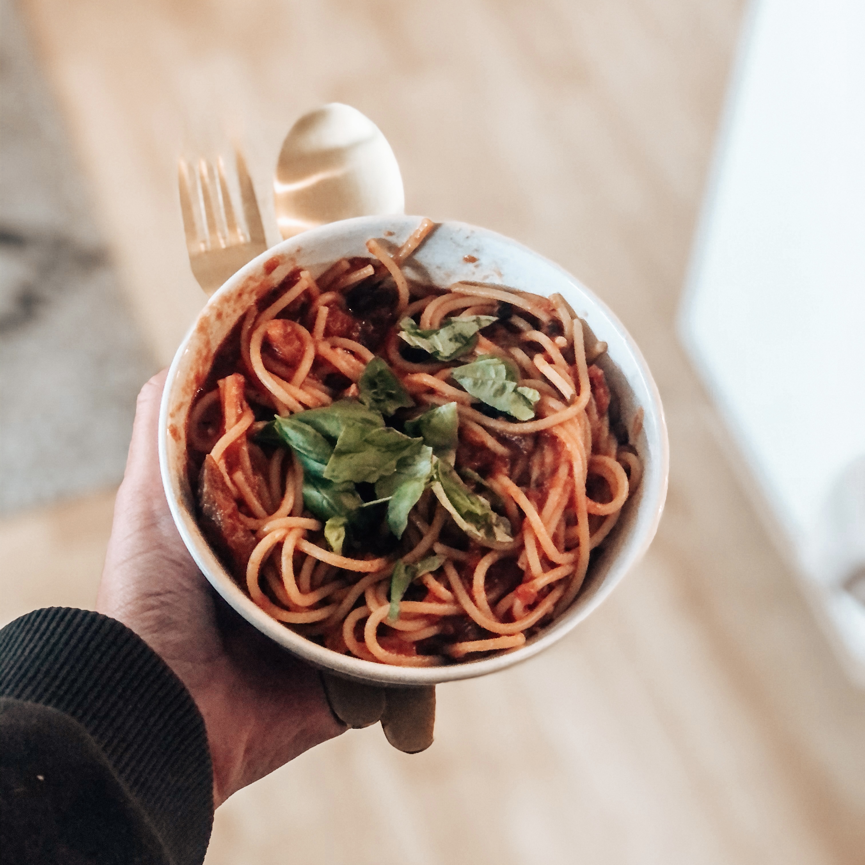 Pasta alla Norma, oftewel: pasta met tomatensaus en aubergine. Dit is absoluut één van mijn lievelingsgerechten.