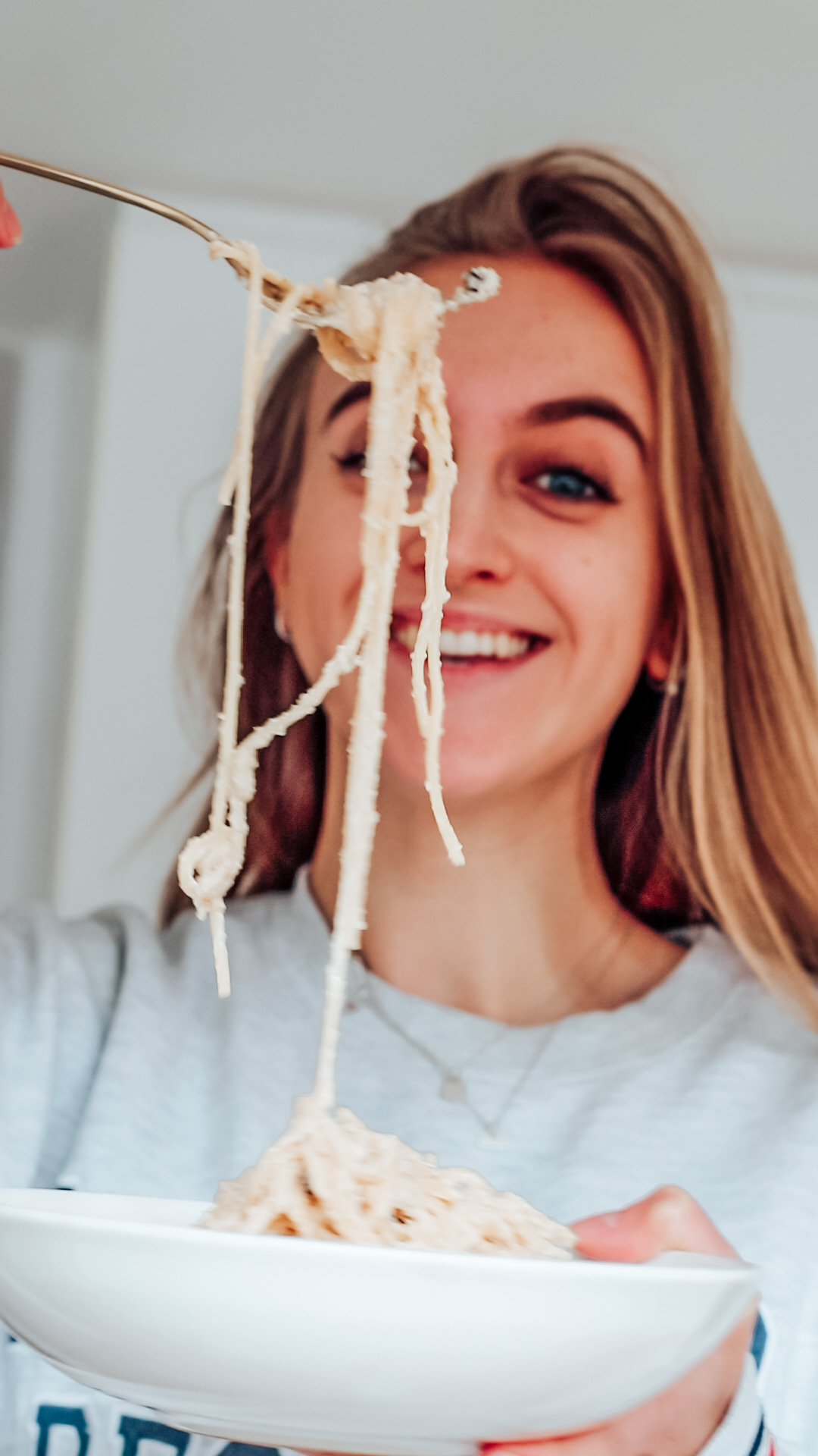 In één van m’n YouTubevideo’s probeerde ik een vegan “cauliflower alfredo pasta” van Vegan Diaries. Die beviel bovenverwachting goed en inspireerde me om mijn eigen draai aan dit recept te geven.